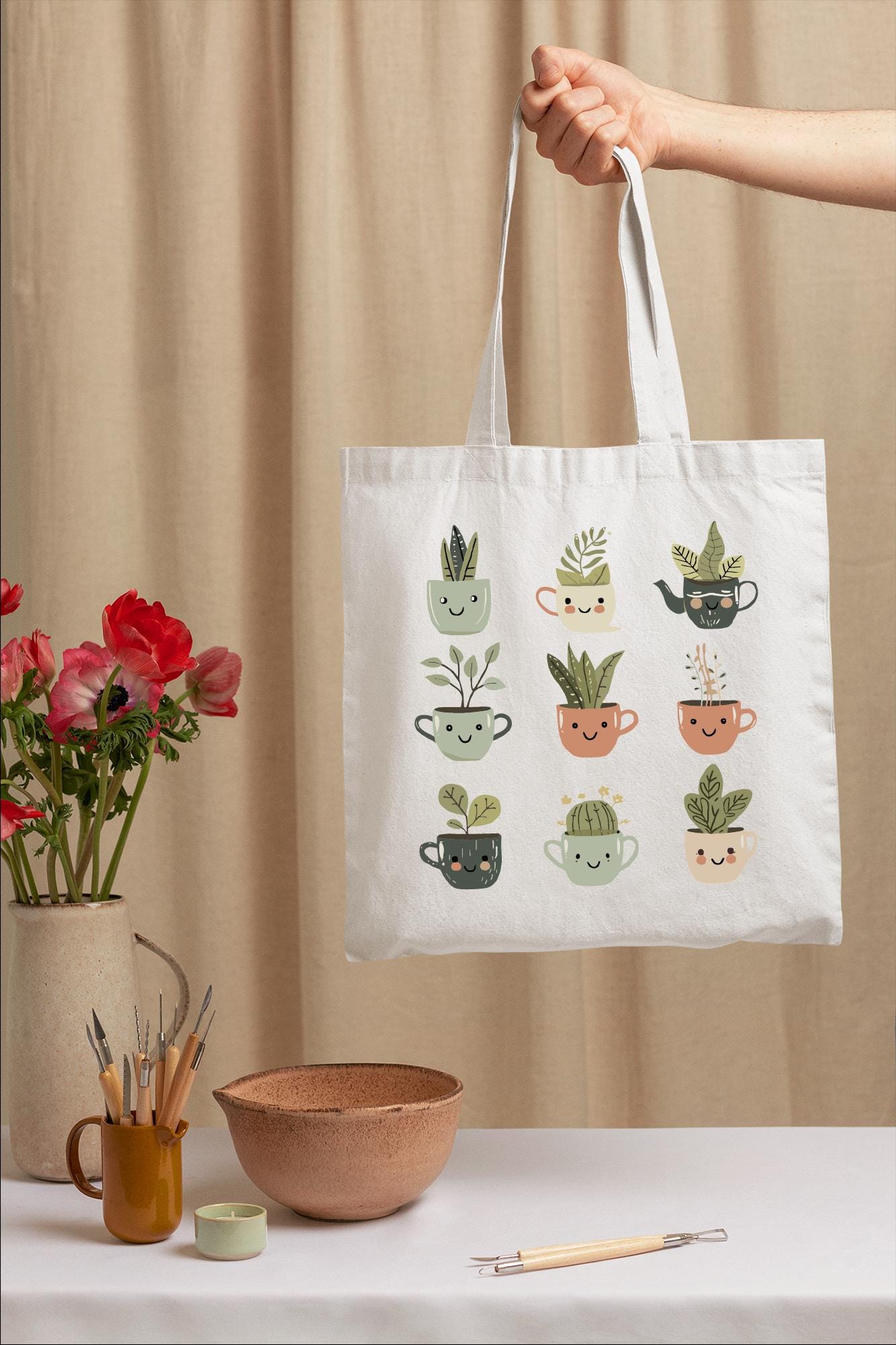 Be the first to review “Cute Plant Tote Bag with Smiling Cups”